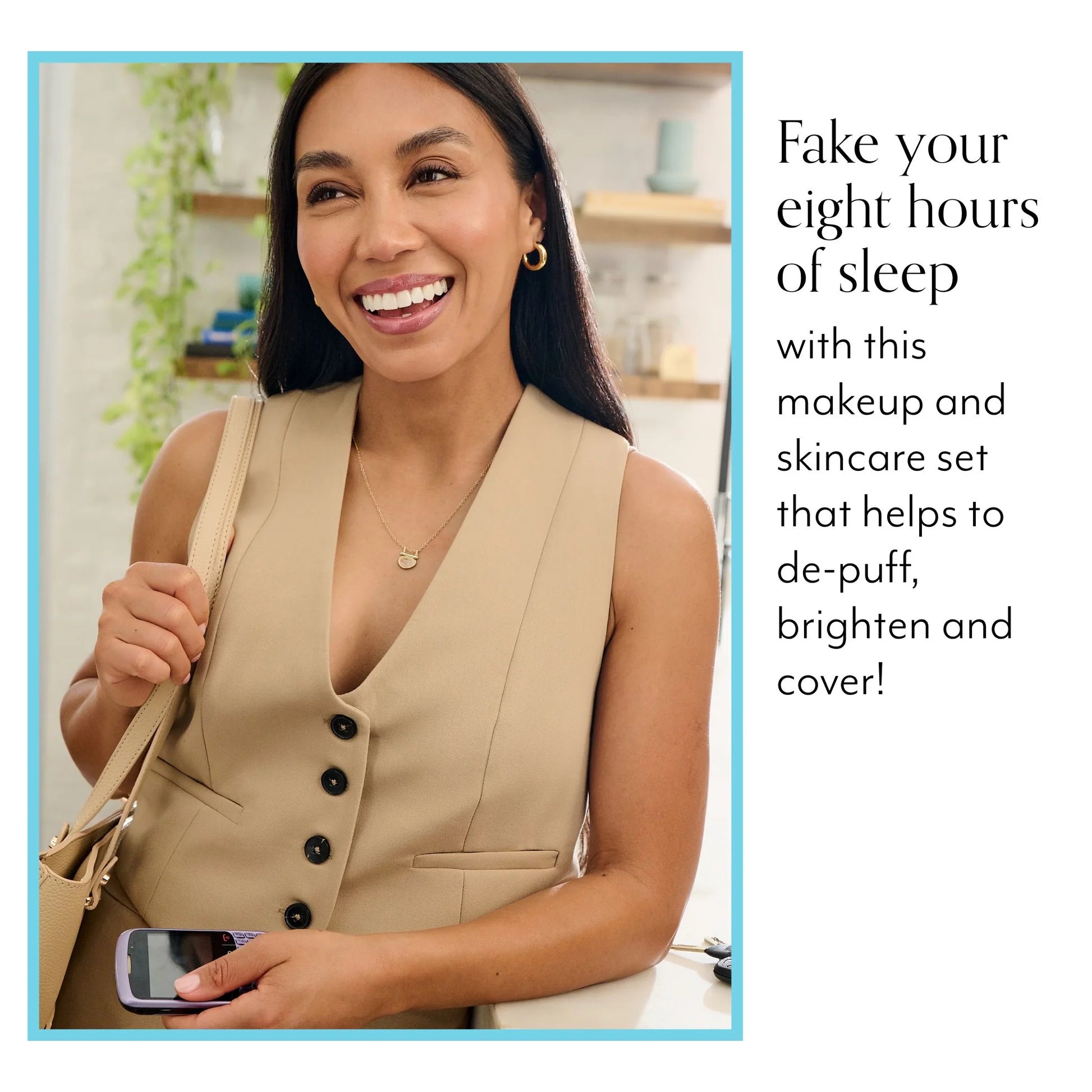 Soothe and treat the look of dark under eye circles with this makeup and skincare set that helps to de-puff, brighten and cover!