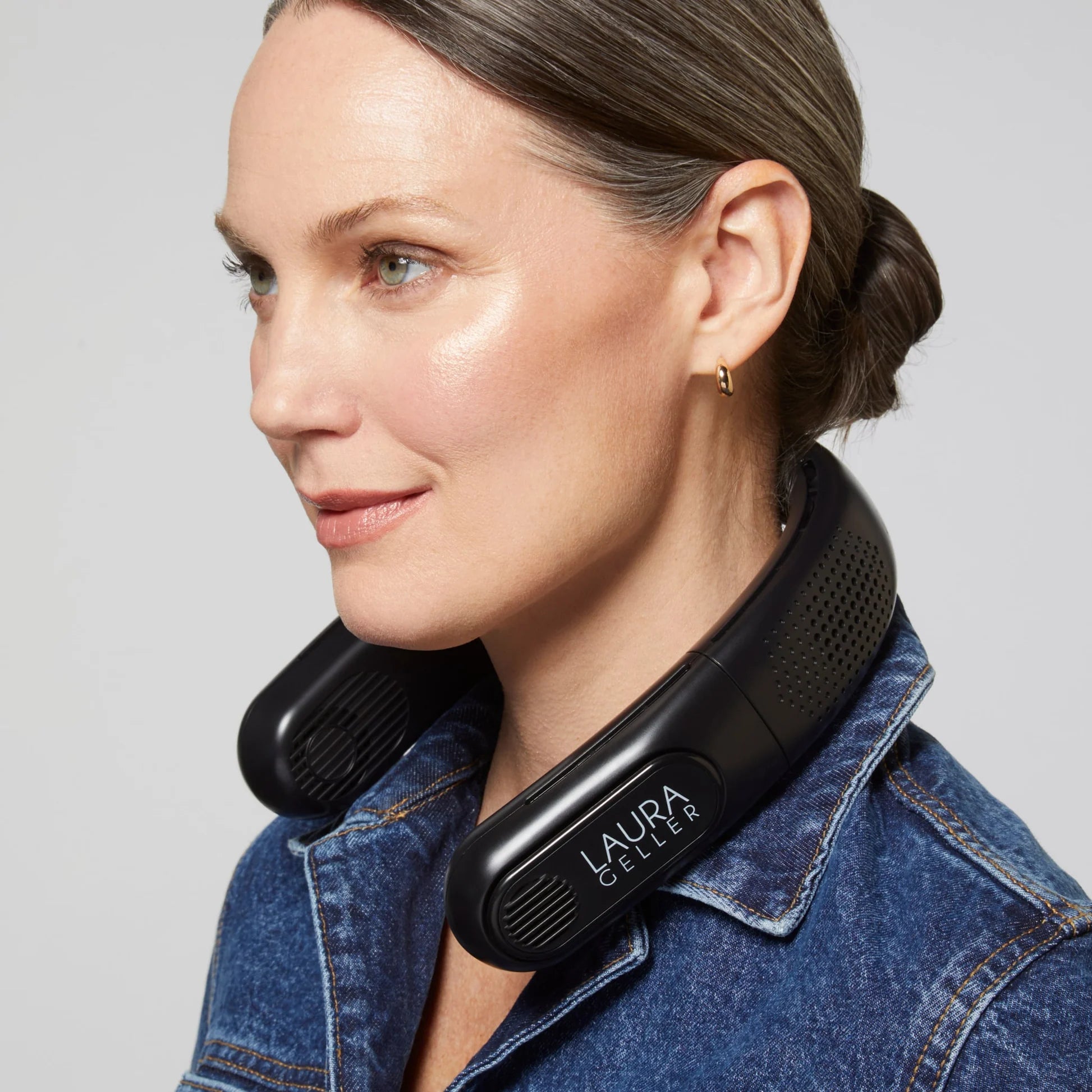 Our hands-free neck fan is perfect for keeping cool on-the-go – whether you’re struggling with hot flashes or traveling in warmer locales!