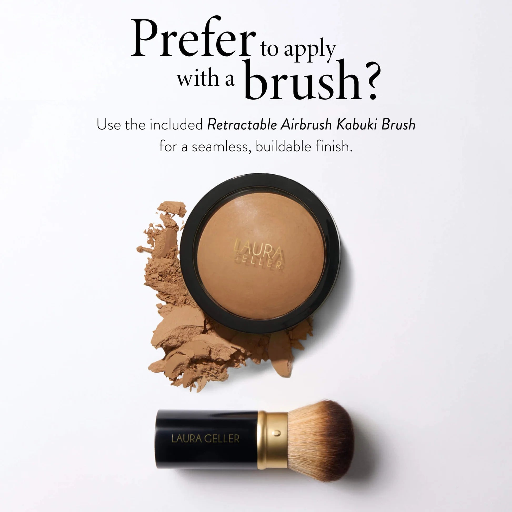 Our long-wearing baked powder foundation delivers our fullest coverage yet for a breathable matte finish, with a Retractable Kabuki Brush included for versatile application.