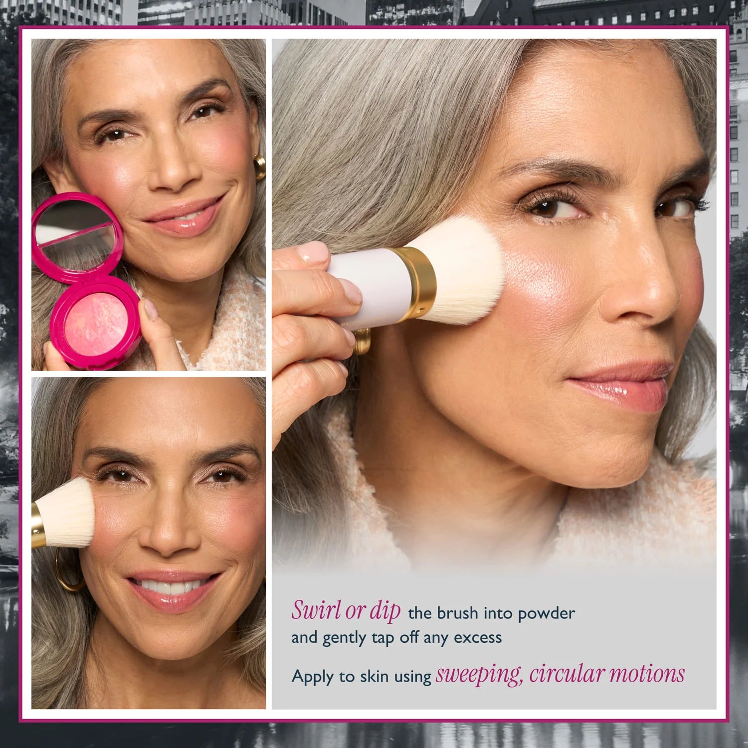 Use this travel-friendly tool to add foundation, color, highlight, or contour the face.