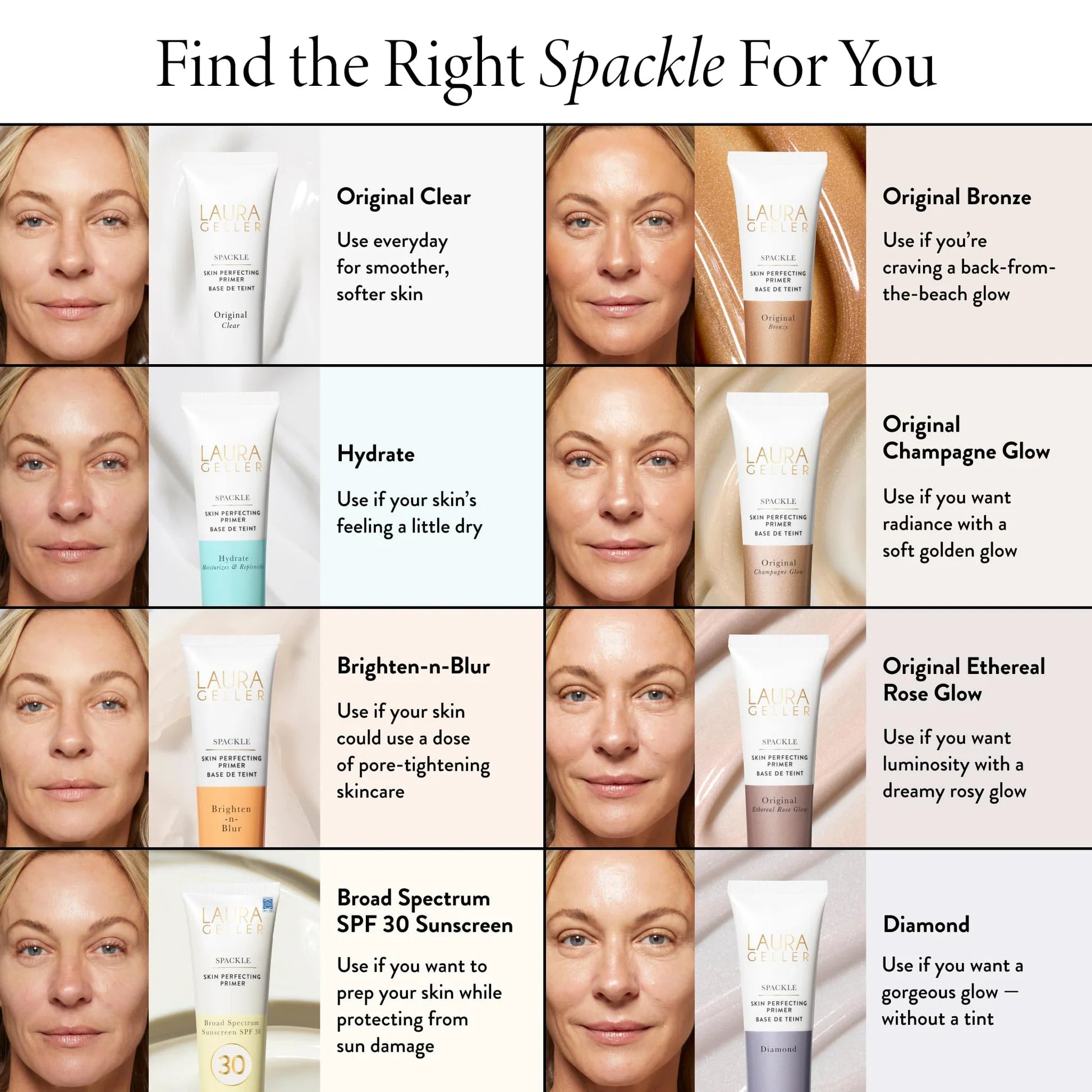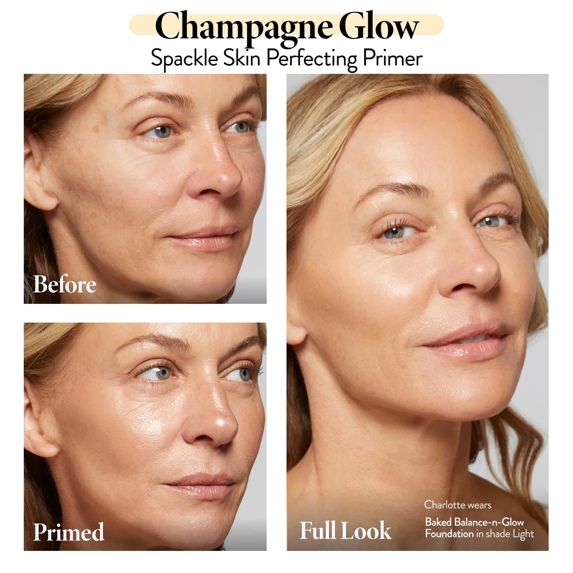 Laura's rich cream-to-gel Spackle is the perfect lightweight base for long-lasting makeup. Subtle champagne tint transforms dull, sallow skin for a radiant, never-glittery look.